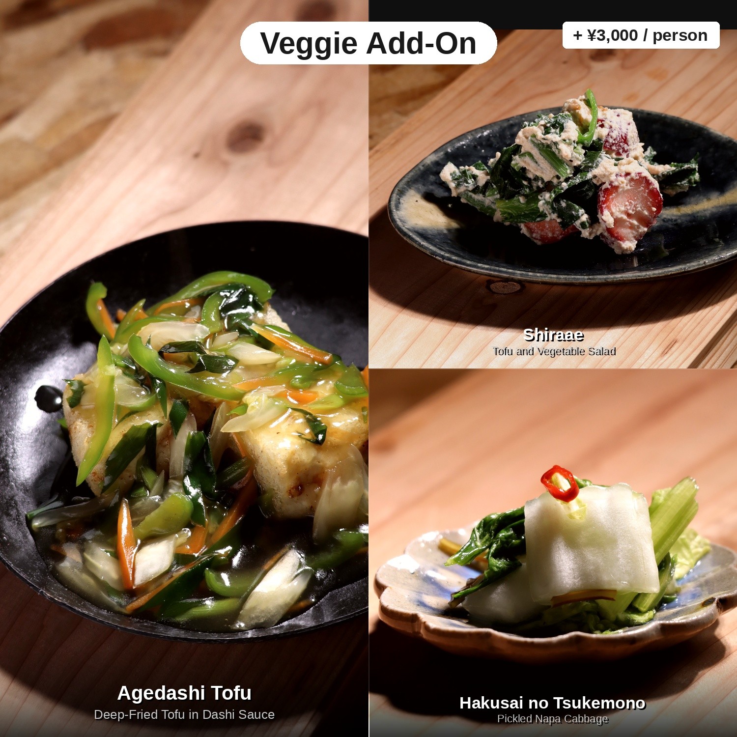 Veggie Add-On — Agedashi Tofu no Ankake + Shiraae + Hakusai no Tsukemono — +¥3,000 / person
