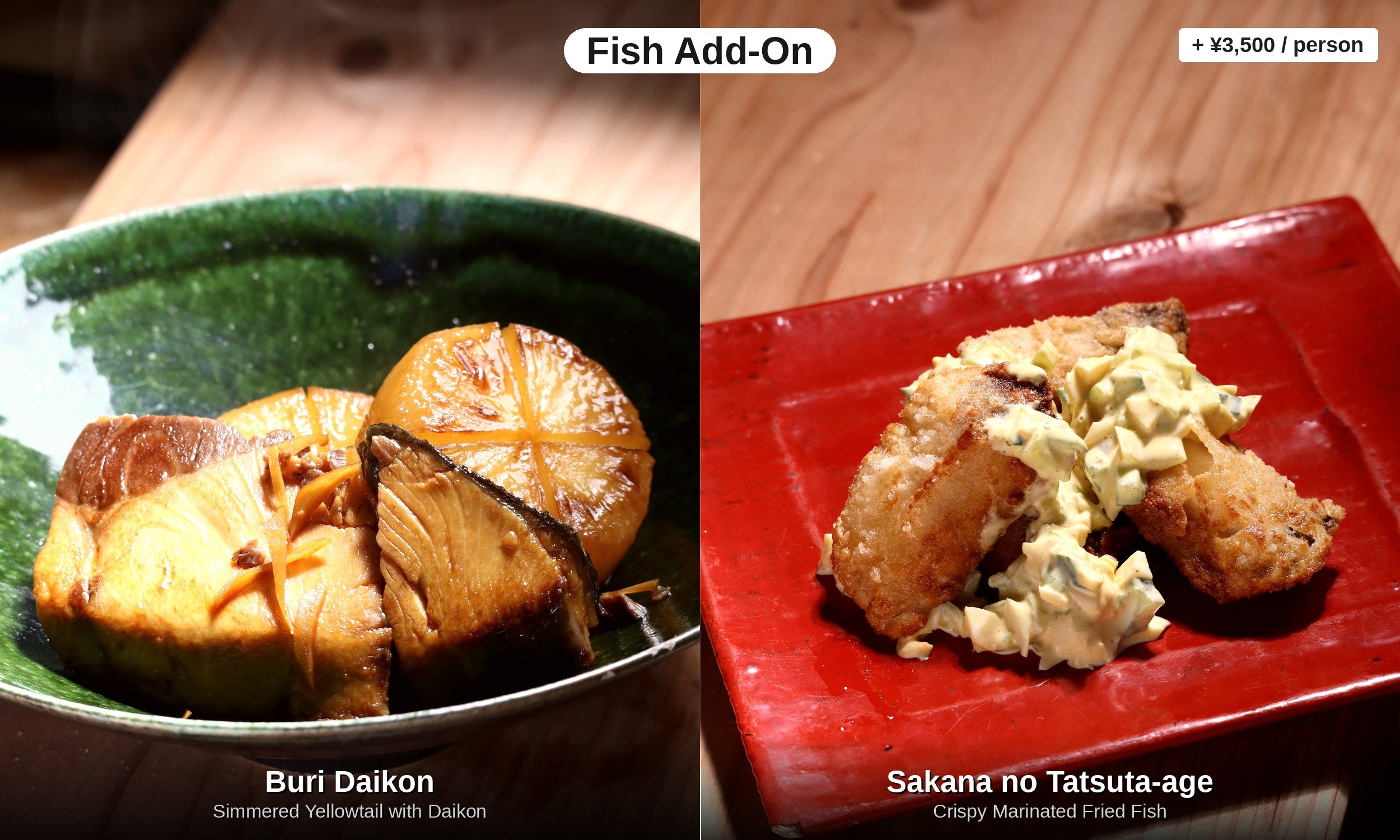 Fish Add-On — Buri Daikon + Sakana no Tatsuta-age — +¥3,500 / person